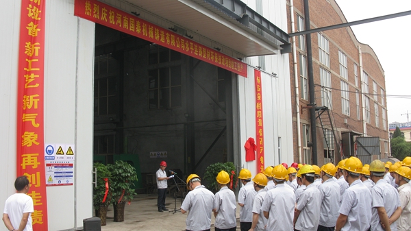 9:58,在歡快的音樂(lè )和喜慶的鞭炮聲中,周總宣布河南國泰機械鑄造有限公司環(huán)保技改工程勝利竣工投產(chǎn),并和??偣餐议_(kāi)了竣工投產(chǎn)的紅幕。