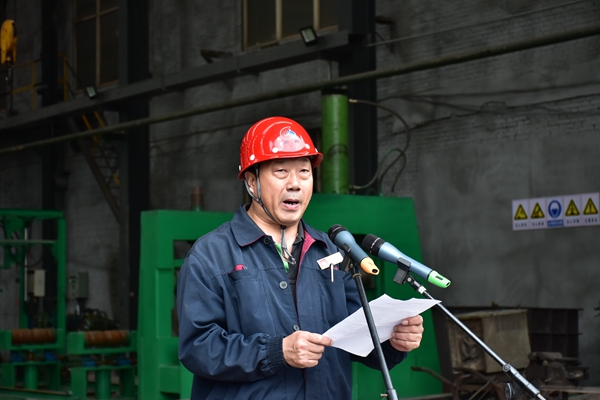 最后,集團公司常務(wù)副總經(jīng)理周為民代表集團公司做重要講話(huà)。他說(shuō),熱烈祝賀機械鑄造公司水平連鑄型材環(huán)保技改工程竣工投產(chǎn)。機械鑄造公司水平連鑄型材生產(chǎn)很早就享譽(yù)國內外,產(chǎn)品市場(chǎng)占據國內半壁江山。近年,基于同行業(yè)的興起和國家環(huán)保政策的苛刻要求,老的除塵生產(chǎn)已經(jīng)遠遠滿(mǎn)足不了環(huán)境和市場(chǎng)要求,這次技改采用國內最先進(jìn)的中頻爐冶煉和布袋除塵,系統的、徹底的環(huán)保技改標志著(zhù)機械鑄造公司第二次創(chuàng )業(yè)的完成。在此,預祝取得輝煌的戰績(jì)和輝煌的效益,在全中國乃至全世界揮發(fā)榮耀。                                                                             09共同見(jiàn)證這一刻.JPG