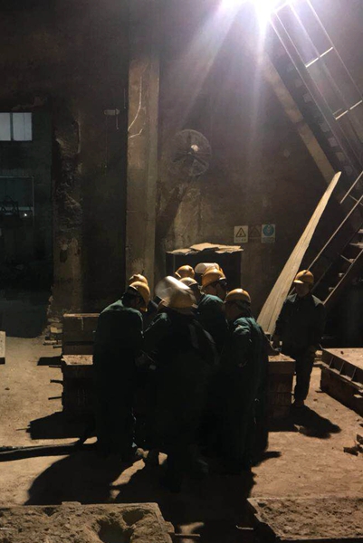2月7日下午5時(shí)許,鑄造5噸電爐母線(xiàn)水管突然爆管,不能正常運行,生產(chǎn)陷入癱瘓。車(chē)間領(lǐng)導立即啟動(dòng)應急預案,迅速現場(chǎng)指揮,帶領(lǐng)大家對水管進(jìn)行纏捆處理,在場(chǎng)的每個(gè)人都被濺出的水澆濕了身。由于是臨時(shí)纏捆,處理的不徹底,繼續開(kāi)爐半小時(shí)后,水管再次漏水。