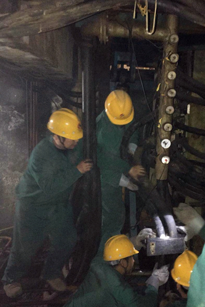 為保證電爐內鐵水不浪費,最大限度減少經(jīng)濟損失,經(jīng)過(guò)簡(jiǎn)短商量后決定立即更換新管。全體員工不顧一天的勞累,緊密配合,參與搶修。電爐下方地方狹窄且滿(mǎn)是積水,大家跪的跪、趴的趴,使盡渾身解數,在昏暗的燈光下把舊管中的電攬線(xiàn)一點(diǎn)點(diǎn)剝離后串進(jìn)新管。晚上7時(shí)水管安裝完畢,電爐重新啟動(dòng),正常運行。