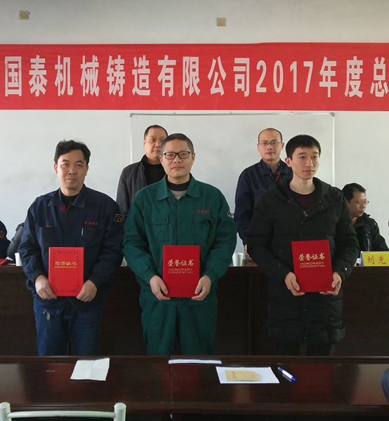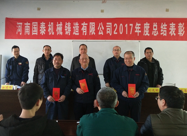 公司總經(jīng)理牛曉宇回顧總結2017年工作。2017年各項經(jīng)營(yíng)指標達到且部分超過(guò)經(jīng)營(yíng)大綱要求,經(jīng)營(yíng)業(yè)績(jì)穩中有升。主要是環(huán)保技改工程的實(shí)施、工藝質(zhì)量的提高、管理制度的完善落實(shí)。亮點(diǎn)是水平連鑄環(huán)保技改工程的投產(chǎn)和效益的顯現,并由此涌現許多先進(jìn)個(gè)人、集體典型。2018年重點(diǎn)工作是完善鑄造環(huán)保設施及總體安全規劃,完成更新更高的生產(chǎn)經(jīng)營(yíng)目標,繼續加強生產(chǎn)經(jīng)營(yíng)管理、制度管理、員工培訓,努力開(kāi)拓市場(chǎng),提高員工福利。